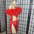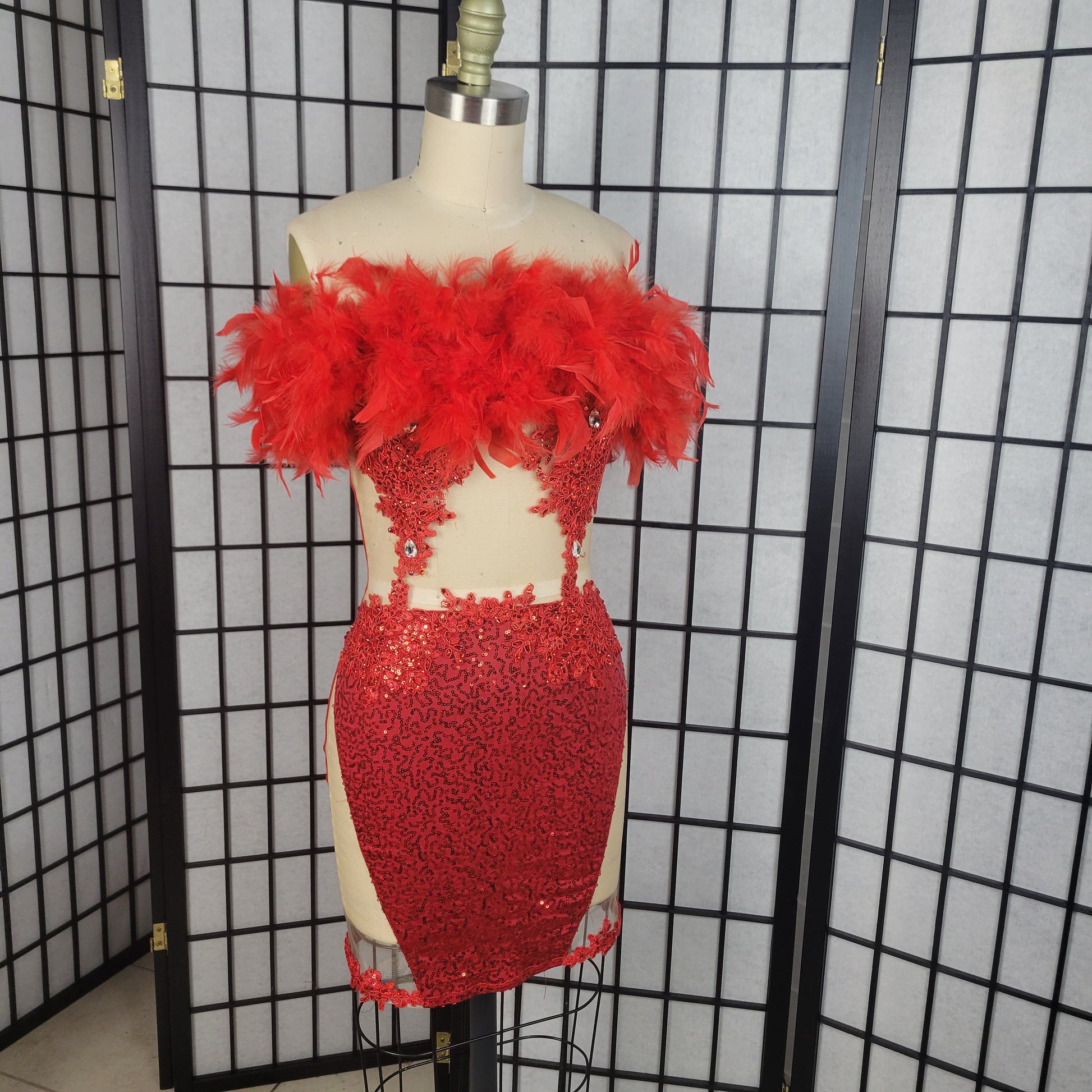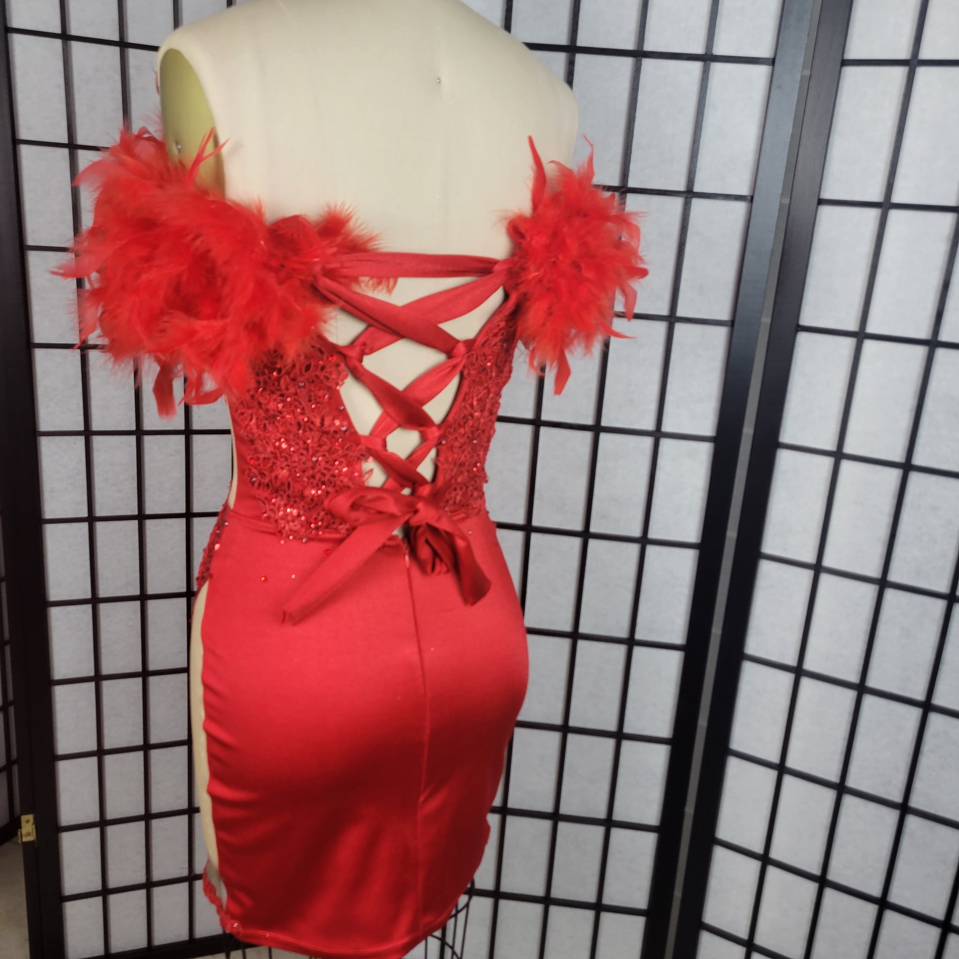 -Front of dress has sequin fabric, back of dress had solid red fabric